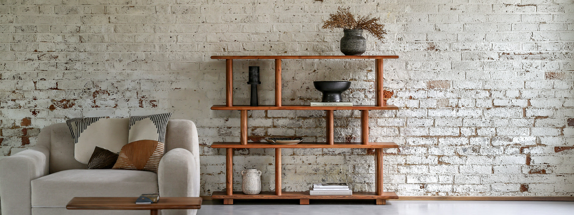 The Highgate collection showcases refined craftsmanship through its layered material palette: weathered oak veneer surfaces paired with solid ash legs in a distinctive peppercorn finish. Wire-brushed oak detailing adds textural depth, creating a sophisticated interplay between warm, natural tones and contemporary lines. This versatile open display unit works beautifully in kitchens and living spaces alike, offering generous storage for collections, tableware, or decorative objects. An ideal statement piece that anchors modern interiors with understated elegance and architectural presence, the Highgate is part of a comprehensive furniture range designed for cohesive home styling.