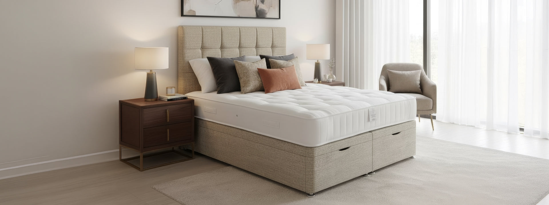 The Arighi Bianchi Stamford Headboard brings refined elegance to your bedroom with its luxurious upholstered design and distinctive cobbled pattern texture. This floor-standing piece commands attention as a statement focal point, combining timeless craftsmanship with contemporary comfort. The carefully crafted detailing adds depth and visual interest, while premium upholstery ensures lasting durability and a sumptuous feel. Perfect for those seeking to elevate their sleeping space with understated sophistication and enduring style.